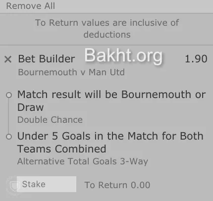 انتخاب دوم ما برای این بازی، تعداد گل زیر ۵ است. دلیل این انتخاب به طور مشخص بورنموث است. سه بازی اخیر بورنموث در لیگ برتر، در مجموع یک گل داشته است! هیچکدام از بازی های این فصل بورنموث، ۵ گل نداشته است و از طرفی آمار خط حمله منچستریونایتد در خارج از خانه، خوب نیست.