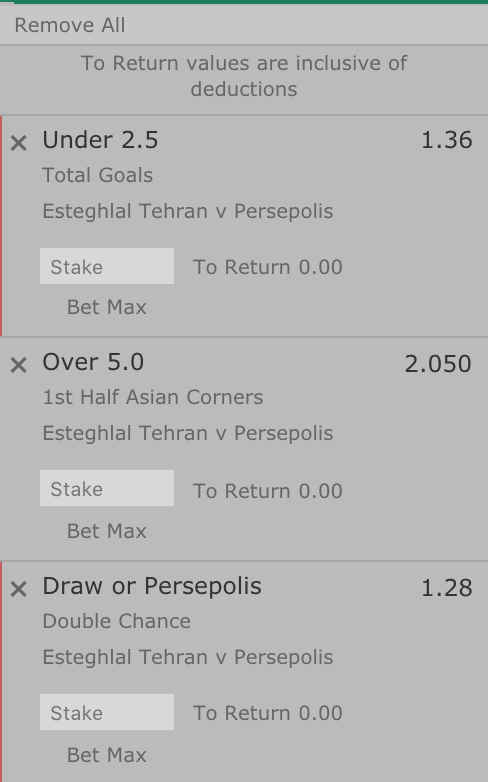 شاید مهمترین چیزی که باید بدانید این است که ۵ بازی از ۶ بازی اخیر دو تیم تنها یک گل داشته است. به همین دلیل اولین گزینه محتمل، مجموع گل زیر ۲.۵ است. از طرفی با توجه به شرایط خط دفاعی استقلال، بعید است پرسپولیس ببازد، پس گزینه برد مساوی مهمان، گزینه دیگر است. همچنین با در نظر داشتن فوتبال تهاجمی استراماچونی و نقطه قوت پرسپولیس در ضربات کرنر، انتظار می رود نیمه اول حداقل ۵ کرنر داشته باشد.