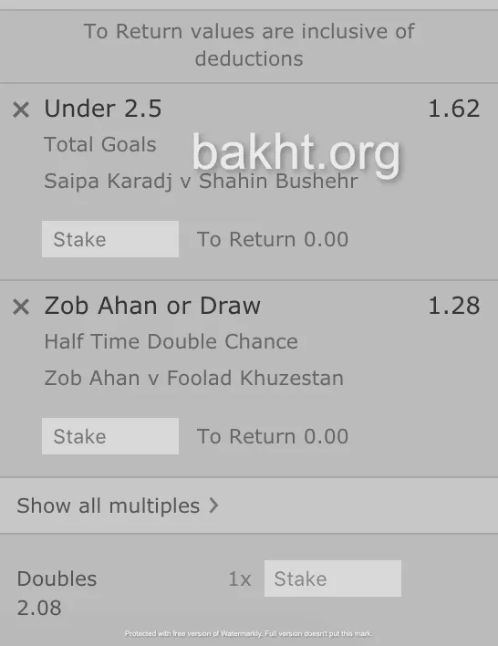 انتخاب اول ما به بازی بین سایپای کرج و شاهین بوشهر اختصاص دارد که انتظار داریم در این بازی مجموع زیر ۲.۵ گل ببینیم(زیر ۳ گل). دو تیم شرایط بسیار بدی در جدول دارند و از شانس های سقوط محسوب می شوند. شاهین در هیچکدام از بازی های این فصل برنده نشده و سایپا هم در ۷ بازی اخیر خود در لیگ، به پیروزی نرسیده است! سایپا در ۶ بازی اخیر خود در لیگ گلزنی نکرده و شاهین در ۵ بازی آخر خود در ۵ بازی، فقط یه گل زده است.