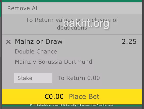 برای این بازی، انتخاب ما ریسکی است اما انتظار داریم رخ دهد. می خواهیم روی گزینه برد مساوی ماینتس(میزبان)، سرمایه گذاری کنیم. ماینتس در خانه تیم خوبی است و در ۴ بازی از ۶ دیدار اخیر خانگی برنده از زمین خارج شده است. از طرفی دورتموند در خارج از خانه نتوانسته کیفیت بازی های خانگی را تکرار کند.