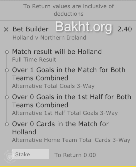 انتخاب اول ما برای این بازی، مطابق انتظار برد میزبان (برد هلند) است. هلندی ها جز شکست لحظات پایانی بازی اول در برابر آلمان، همه بازی های خود را برده اند و بعید است امشب ایرلند شمالی این روند را عوض کند. انتخاب دوم ما، حداقل ۲ گل در بازی است. هلند در تمام ۴ بازی این گروه، حداقل ۲ گل به ثمر رسانده است.