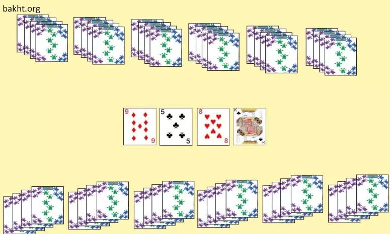 همیشه بعد از دست دادن کارت ها باید 4 کارت بماند. این کارت ها را برگردانده در وسط قرار می دهیم. بازیکنان باید کارت هایشان را به بسته های 4 تایی تقسیم کنند و به پشت روی زمین بگذارند.