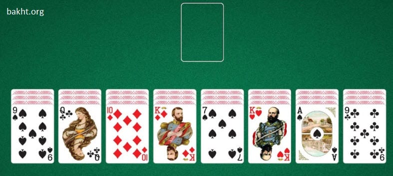 باید هشت ستون از کارت ها ایجاد کنید. کارت ها را به پشت روی زمین قرار دهید. در هر ستون باید 4 کارت قرار داد. بالاترین کارت هر ستون را برگردانید.