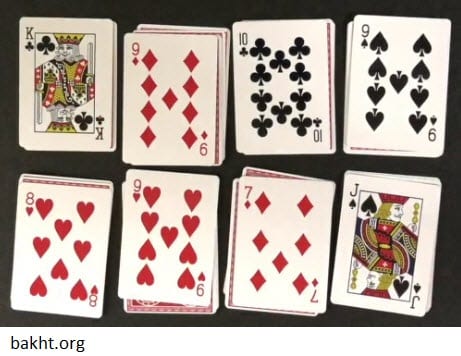 باید 8 بسته 4 کارتی ایجاد کنید. بالاترین کارت از هر بسته را برگردانید.