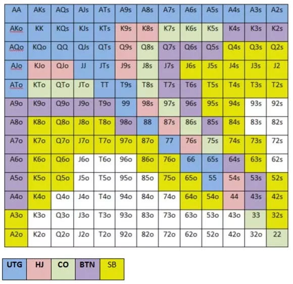کم کم وارد بخش‌های جالب بهترین دست ها می‌شویم. تعیین کردن این که از چه موقعیتی ( از لحاظ اولین نفر یا آخرین نفر در شرط بندی) و با چه دستی رِیز (raise) کنیم.
