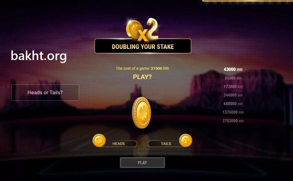 شما Heads (همان شیر) یا Tails (خط) را انتخاب میکنید، مبلغ شرط خود را تعیین کرده و گزینه Play را میزنید.