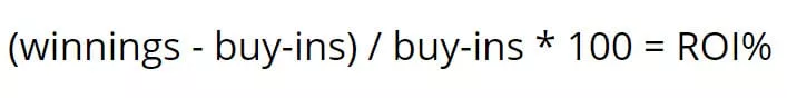 به طور ساده، بازگشت سرمایه با تقسیم سود مجموع شما در تورنمنت ها (بازگشت شما) به میزانی که صرف خرید حداقل ژتون لازم برای ورود به مسابقات (Buy-in) کرده اید (سرمایه شما)، به دست می می آید. در ادامه، معمولا جواب به 100 ضرب شده و براساس فرمول زیر، در قالب درصد، نهایی می شود: