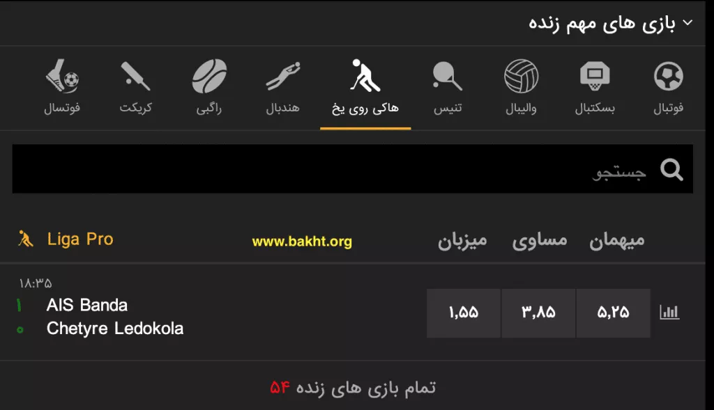سایت شرط بندی ایران ایکس بت، همیشه مسابقات هاکی روی یخ را برای شرط بندی پوشش میدهد. مسابقات مختلفی از جمله لیگ روسیه در لیست هاکی حضور دارد. از آنجایی که ایران ایکس بت توسط مجله بخت مدیریت میشود، همیشه مطمئن است.