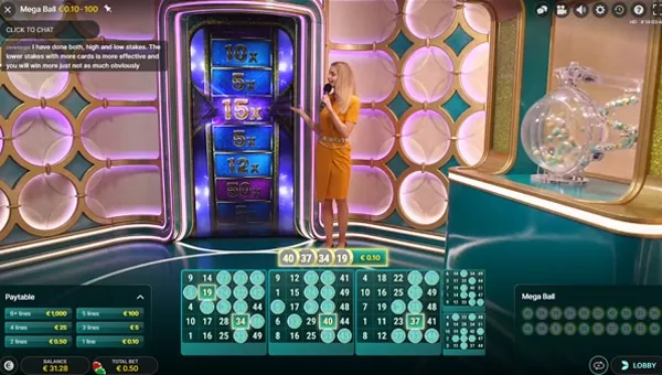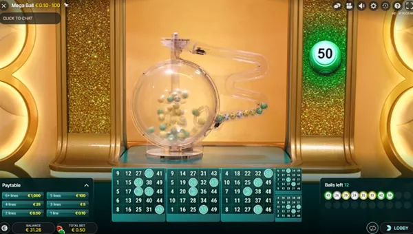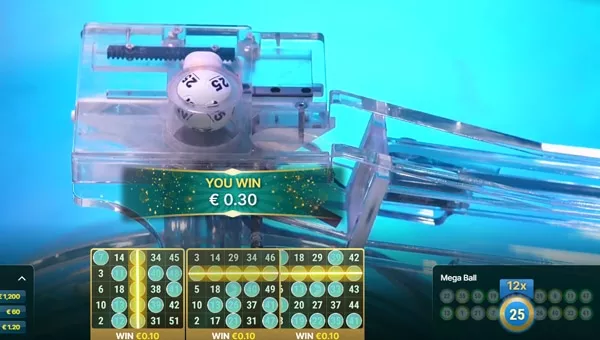 آخرین توپ کشیده شده مگا بال است. اگر این Mega Balls یک یا چند خط را پر کند، پولی که شما برنده شدهاید در ضربکننده ضرب میشود. اگر یک یا چند خط را پر کردید، پول دریافت می کنید و بازی بعدی شروع می شود. (در تصویر زیر مشخص است که چند خط پر شده است.)