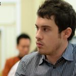 کوین (صاحب عکس بالا) که استکی 2.4 میلیونی دارد، از موقعیت زیر تیغ (UTG) با 125 هزار تا بازی را بازی می کند (شرط بندی را آغاز می کند) و از سوی کِین، به عنوان چیپ لیدر با 4.5 میلیون، در موقعیت میانی و نیک، با 500 هزار تا در استک، در شرط بزرگ کال می شود. فلاپ به شرح زیر رو می شود: