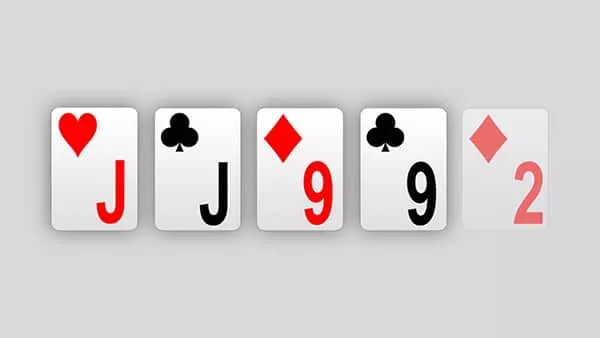 دو کارت با ارزش یکسان به همراه دو کارت دیگر با ارزش یکسان همراه با یک کارت دیگر.