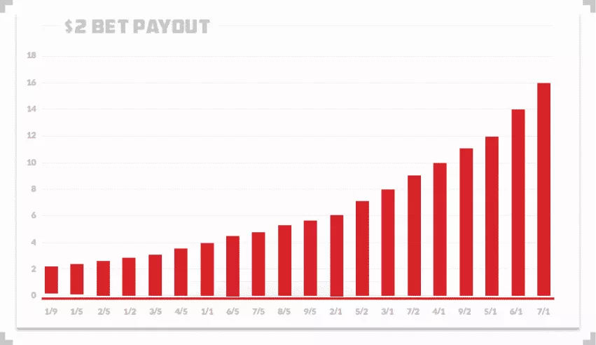 پرداختها در شرطبندیهای روی برد به ازای 2 دلار بر اساس شانسهای مختلف