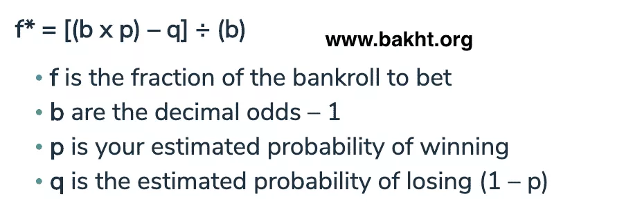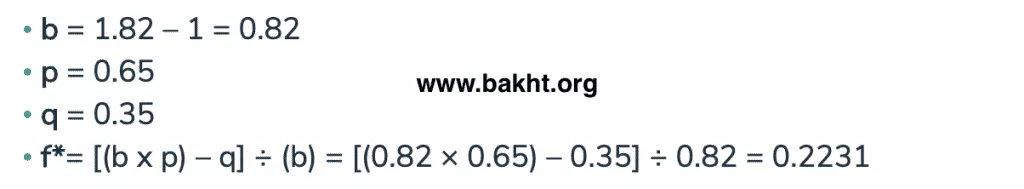 در این فرمول، f میزان درصد سرمایه گذاری شما است. b ضریب شرط منهای یک، p احتمال بردن شرط به نظر خودتان و q، احتمال باخت شرط است.