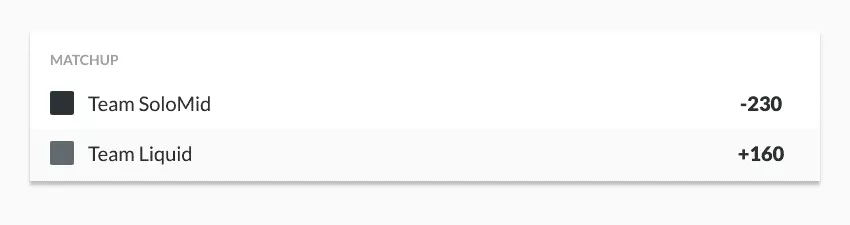 فرض کنیم تیم SoloMid در یک مسابقه LCS معمولی فصل با Team Liquid روبرو میشود. خط شرط بندی به این صورت است: