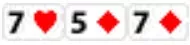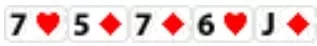 دست بسیار فوق العاده ای برای بلوف است. این دست 6-6، 5-5، 6-7 و 5-7 را بلاک می کند. البته درست است که فلاش ها را بلاک نمی کند، ولی با توجه به دستخوانی اش، زیاد نگران در اختیار داشتن فلاش از سوی شرط بزرگ نیست. با وجود این، رقیب بلافاصله با کارت های زیر، کال می کند: