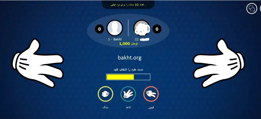 پس از ورود به بازی در بالای صفحه شما حریف خود و مشخصاتش را خواهید دید. در قسمت پایین باید یکی از سه گزینه قیچی، کاغذ یا سنگ را باید انتخاب کنید.