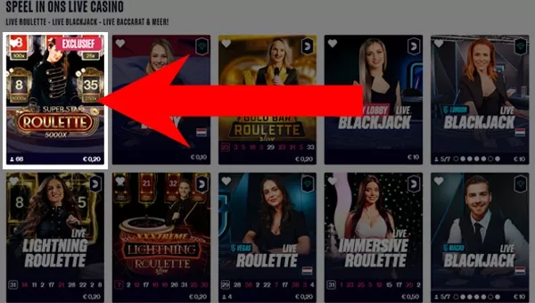 به بخش کازینو زنده بروید. هنگامی که در بخش کازینو زنده هستید، بازی Super Stake Roulette را از طریق جستجوی دستی یا جستجوی سایت بیابید، سپس روی بازی در لابی کلیک میکنید. آنگاه به استودیوی زنده Stakelogic منتقل میشوید. در اینجا خواهید دید که یک دیلر زنده بازی را ارائه خواهد کرد.