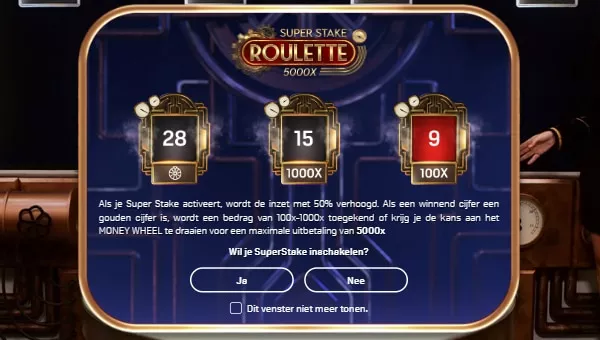 همچنین هنگام بازی با Super Stake همیشه یک عدد با شانس برنده شدن Money Wheel وجود دارد.