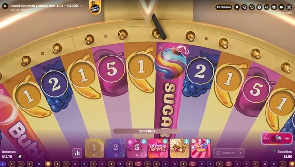 بازی سوئیت بونانزا کندیلند، در مقابل یک چرخ رنگارنگ انجام می شود.