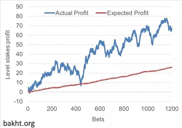 در مقایسه با متد CLV، استفاده از سود و ضرر واقعی چندان کارا نیست. حتی با در نظر داشتن 1000 شرط هم تنها احتمال 1 در 10 وجود دارد که شانس باعث ثبت سودی 2 درصدی شده باشد در حالی که انتظار 2 درصد باخت است. آمارگرانی که بخواهند این نظریه را به آزمون بگذارند، حتما موافق خواهند بود. آیا چنین قماربازی باید با در نظر داشتن میزان غلبه اش بر ضرایب نهایی بتواند چنین سودی کسب کند. حتما فقط تعداد اندکی هستند که جرات کنند ادعا کنند چنین رخدادی صرفا یک بار در 10 هزار بار رخ می دهد.