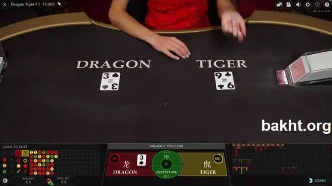 - اگر روی تایگر و دراگون شرط بندی کنید و بگیرد، ضریب 2 دارید. یعنی پول شما دو برابر میشود. اگر روی مساوی شرط بندی کنید و اینطور شود، پول شما ده برابر میشود! شرط ها با چیپ کازینویی انجام میشود.