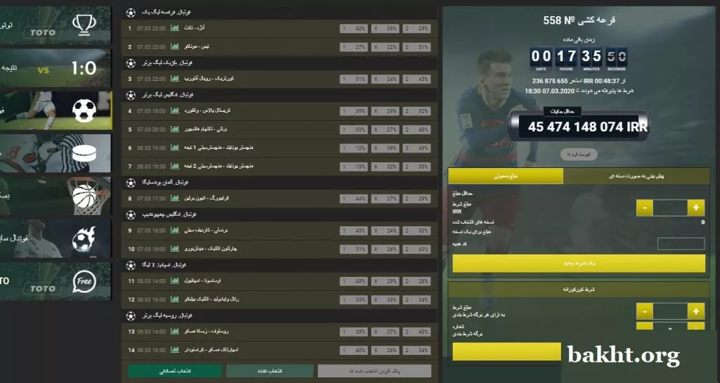 سایت های شرط بندی ایرانی کمی، در حال حاضر توتو را ارائه میدهند. بت وینر، یکی از معدود سایتهایی است که توتوی شرط بندی آنلاین دارد. حال حاضر با توجه به محدود بودن لیگ های در حال اجرا به دلیل کرونا، توتو در بت وینر هم غیرفعال است اما عکس زیر مربوط به یکی دو ماه پیش است. این سایت بین المللی است و همانطور که میدانید مبلغ کل به 4.5 میلیارد تومان رسیده بود. یک سری بازی برای شرط بندی در نظر گرفته شدهاند و نحوه محاسبه مبلغ شرط بندی شما نیز دقیقا به همان شکل تصاعدی است. ضرایب در این سایت، تنها جهت این است که بدانید کدام تیم شانس بیشتری برای برد دارد و در نتیجه تاثیری ندارند. توتوچی و سیکا 90 نیز در این زمینه فعال است.