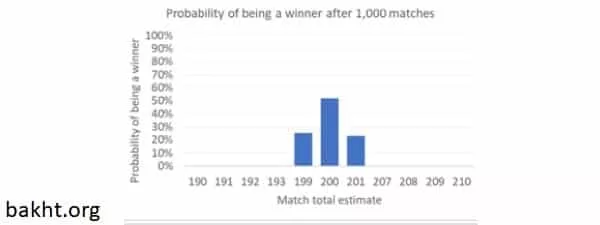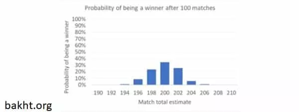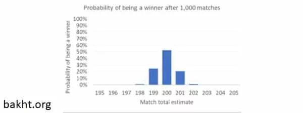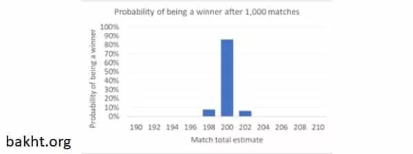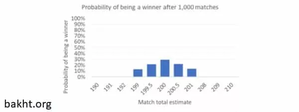 معمولا وقتی بوک میکرها ضرایبی چون 190، 200 و 210 اعلام می کنند، بازی هم در همین امتیازات به آخر می رسد. بله، نتایج واریانس تصادفی خوبی به خود می بینند و شاید یک سوم بازی ها با نتایج کمتر از 182 یا بیشتر از 218 به پایان می رسند، ولی در بلندمدت بوک میکرها خیلی خوب هستند. واقعا ماهر هستند. برای غلبه بر آن ها، باید به حاشیه سود آن ها غلبه کنید. قیمت هایی چون 1.95 به معنای آن است که باید 51.3 درصد مواقع بهتر از بوک میکر باشید تا فقط ضرر نکنید. با ضرایبی چون 1.91 این عدد به 52.4 درصد می رسد.
