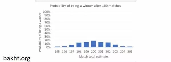 دیگر سراغ نشان دادن نمودار بعد از 10 هزار مسابقه نرفته ام. حتما می توانید حدس بزنید به چه شکل درخواهد آمد. بازیکن 200 امتیازی هر بار برنده می شود.